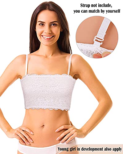 Uniek design: het kanten patroon op de voorkant maakt de tubebeha zonder pads mooi en schattig, het ontwerp zonder bandjes maakt het eenvoudig aan- en uit te trekken, de positie van de uitsparing heeft kleine koordlussen, zodat je bandjes (niet meegeleverd) zelf kunt installeren.