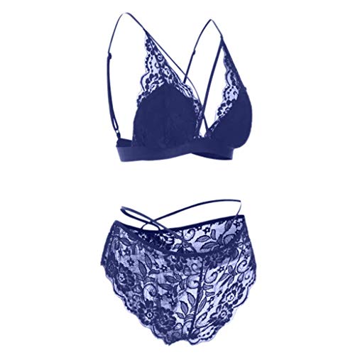 Lace Ring Women Sexy Size Strappy Set Plus Steel Crisscross Passion No Bra Sexy Negligee (Blue, XXXL)