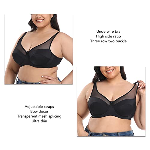 Specification: Vrouwen Beha Verstelbare Beugelbeha Modieuze Mesh Splicing Beha Elegante Boog Decor Ademende Dunne Beha met 2 Gesp Per Rij voor Dagelijks Leven