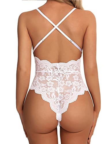 Aranmei Vrouwen Snap Kruis Lingerie Sexy Kant Bodysuit Diepe V Teddy Een Stuk Kant Babydoll