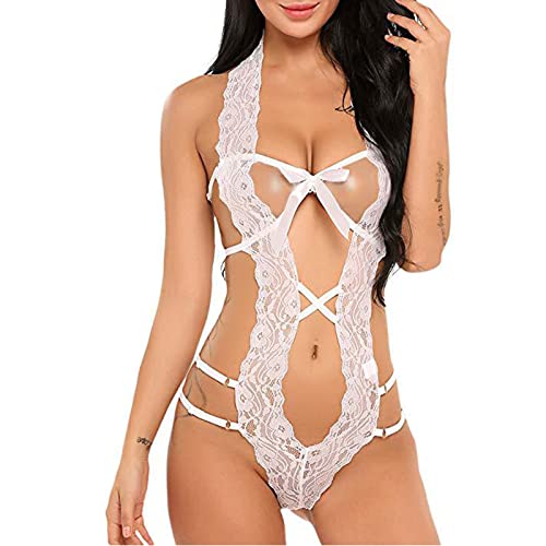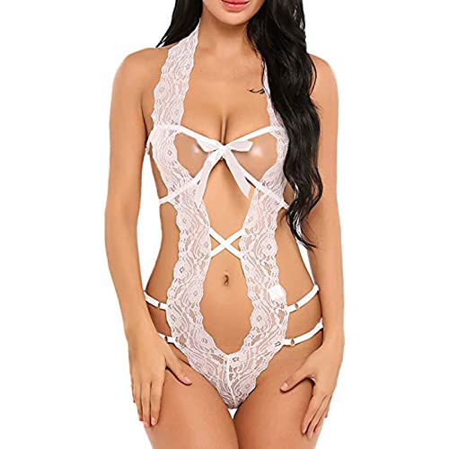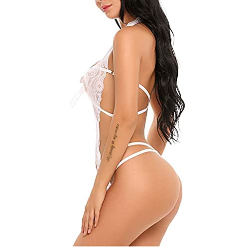 Specification: Lingerie voor Vrouwen Kant Een Stuk Teddy Diepe V Halter Open Rug Bodysuit Babydoll