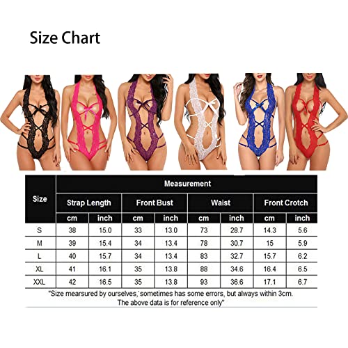Uniek ontwerp: Sexy lingerie voor vrouwen keurt een diepe V-hals en waaiervormig kanten trimontwerp, vetersluiting aan de voorkant met strik versiering, verstelbare bandjes, de achterkant is volledig open en de onderkant is ontworpen met een ultrakorte heuprrok. De unieke ontwerpstijl kan je sexy en charmante figuur laten zien
