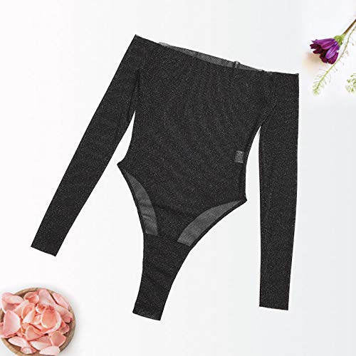 NELZ Sexy lingerie voor dames, glanzend, bodysuit, lingerie met lange mouwen