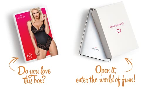 Specification: Obsessive Delicaat figuurbenadrukkend Ouvert-body met chique kant en satijnen veters in leuke geschenkdoos