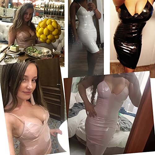 4. Creëer het perfecte lichaam voor jou: het is erg sexy. Dames kunstleer stretchy mouwloze kokerjurk, slanke pasvorm, ontworpen in laag uitgesneden, push-up, glanzend oppervlak, rugloos, maakt je charmanter, modieus en chic