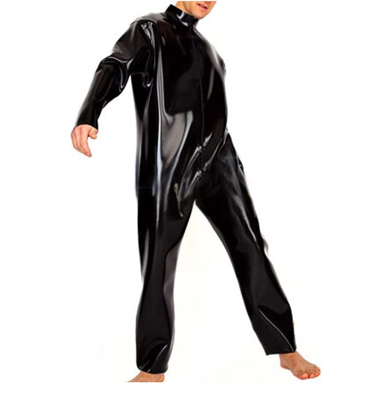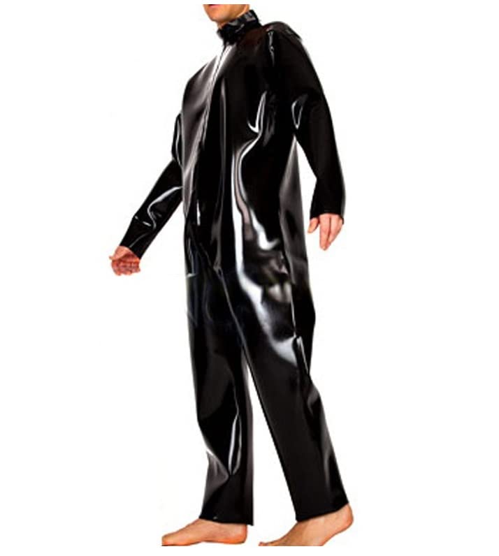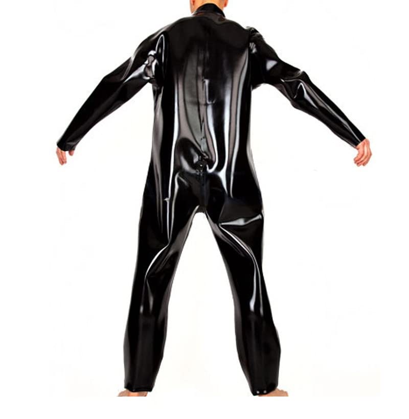 Specification: Zwarte Sexy Losse Latex Catsuit Met Lange Mouwen Van Voor Naar Kruis Zip Rubber Bodysuit Algehele Zentai Body Suit