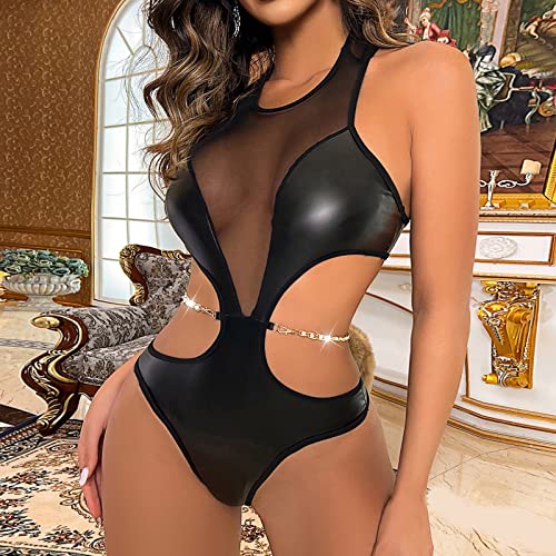 Specification: Satijnen Sexy Negligé Ladies Mesh Buckle Splicing Fine Craft Belt Girdle Black Split Leather Sexy Lingerie (Black, M)