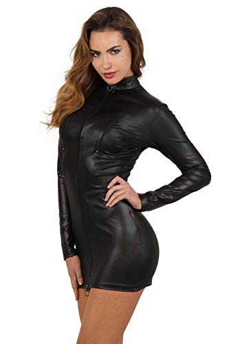 Sexy mini-jurk voor dames, een Miss Noir-creatie, die kwaliteit met comfort combineert, zonder afbreuk te doen aan design, zwart of rood, mouwloos of met lange mouwen, je hebt de keuze. Met tweeweg-ritssluiting aan de voorkant en twee kleine ritssluitingen op de borsten, alle fantasieën van games zijn daarom toegestaan. Met een paar handschoenen van verschillende lengte te dragen om de erotische touch te versterken, net als hoge hakken, die de essentiële bondgenoot voor je look zijn.