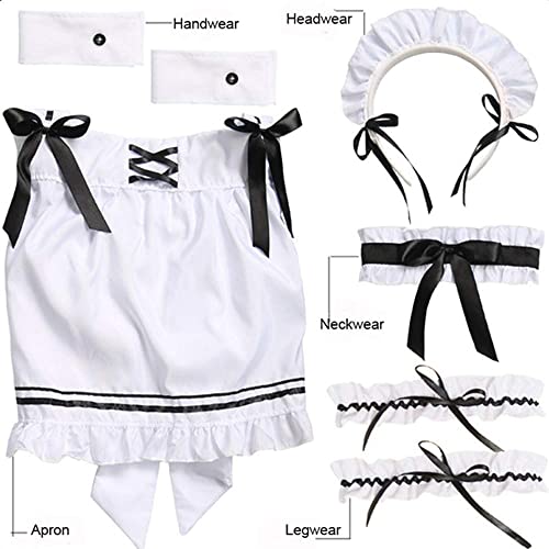 De complete set bevat: Womens French Maid Kostuum Cosplay omvat jurk + armband * 2 + hoofddeksels + nekring + schort + beenring * 2