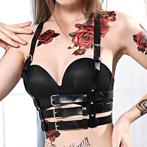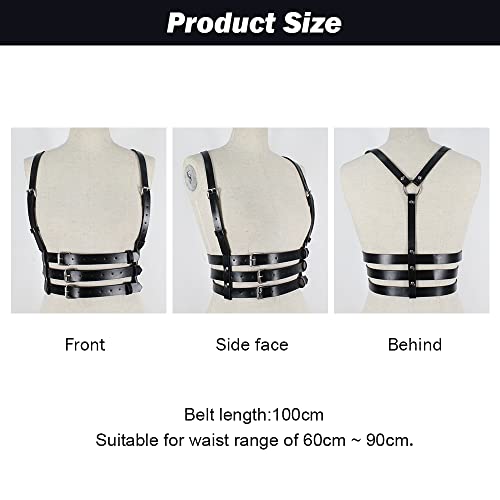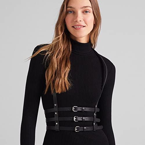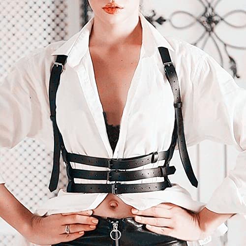 Specification: TOFBS Punk Tailleharnas Lederen borstriem Zwarte Goth-ketting Verstelbaar lichaamsvest Sieraden voor Vrouwen Meisjes Cosplay-feestje Rave Halloweenkostuum, #5, Eén maat