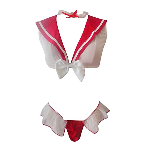 Women School Girl Lingerie Costume Lingerie Set Sexy Student Costumes Mini (Red, L)