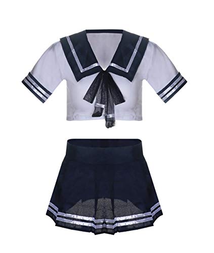 Specification: YUANMO Unibaby schoolmeisje lingerie-outfit cosplay matrozenpak kostuums stropdas top mini rok met sok