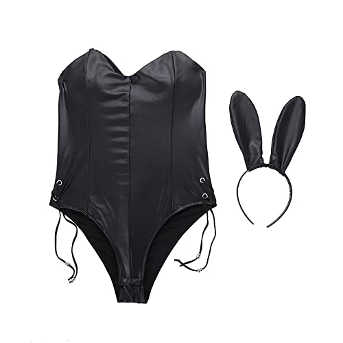 Bunny kostuum voor dames, sexy, schattig, warm, verleidelijk, sexy leren overall met schattige konijnenoren-hoofdband, laat je een konijnenmeisje in de anime-show ben je het meest sexy en schattigste karakter.
