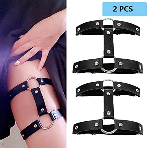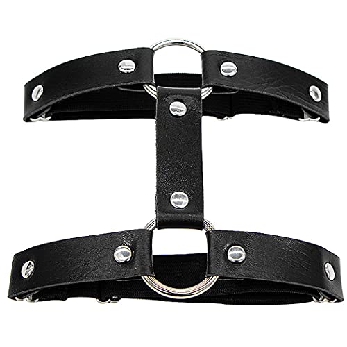 Specification: Aabellay 2 stuks dubbele rij jarretels been ring gotische been elastische punk harnas kousenband verstelbare jarretelband met 2 metalen clips – zwart, Zwart, M