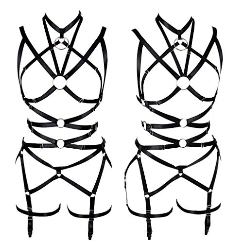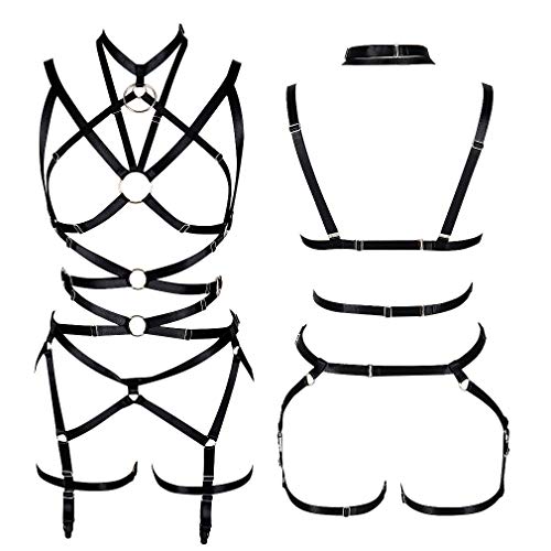 Specification: BBOHSS Vrouwen Body Harness Set Carnaval Garter Belt Elastische Hollow Top Bra Punk Gothic Fotografie Dans Kostuum (0013).