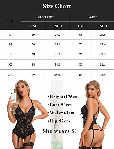 EVELIFE Lingerie voor vrouwen ondeugende kanten lingerie teddy bodysuit met bretels lingerie met kousenband (geen kousen)