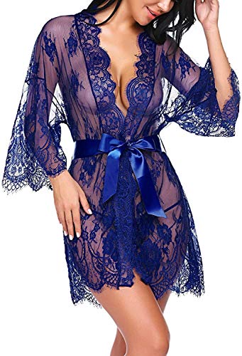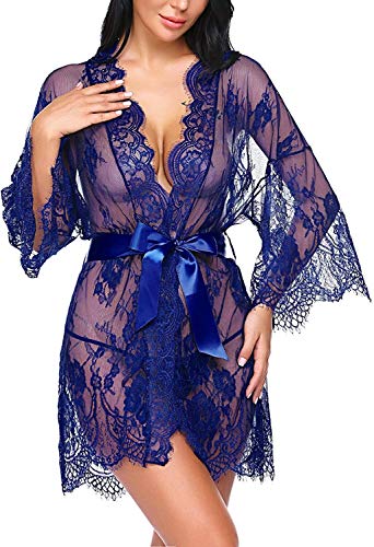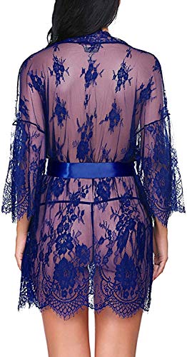 Sexy lingerie Women’s Lace Kimono Robe Babydoll Lingerie Mesh Nightgown -Sexy lingerie kant pop (Color : Blue, Size : 3X-Large)
