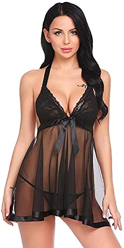 EFHJSUIR sexy pyjama voor dames Dames S Strings Nachtkleding Kant Chemise Ondergoed Transparant Plus Maat Y Kostuums Nachtkleding(Color:Black,Size:Medium)