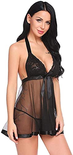 Specification: EFHJSUIR sexy pyjama voor dames Dames S Strings Nachtkleding Kant Chemise Ondergoed Transparant Plus Maat Y Kostuums Nachtkleding(Color:Black,Size:Medium)
