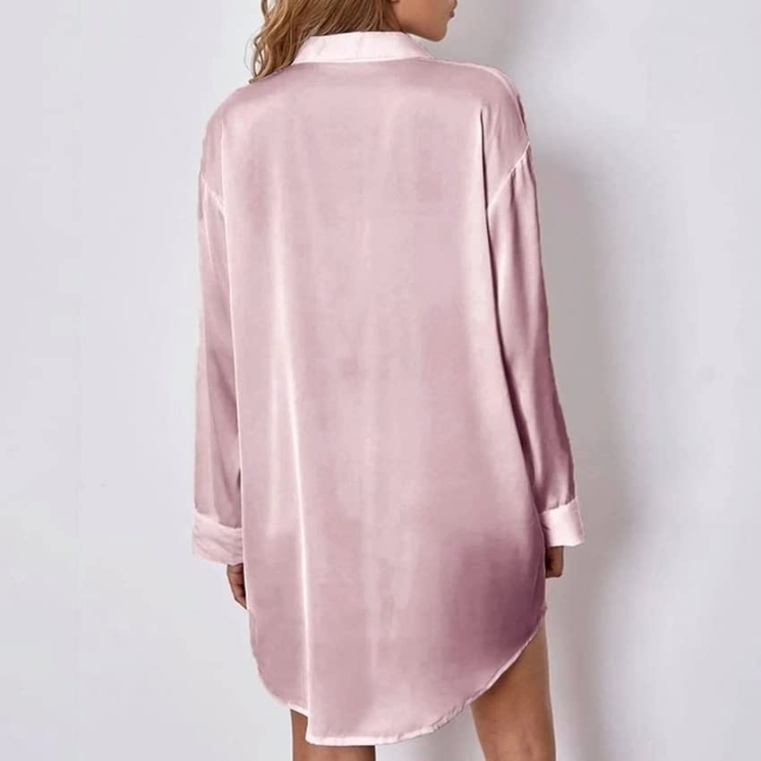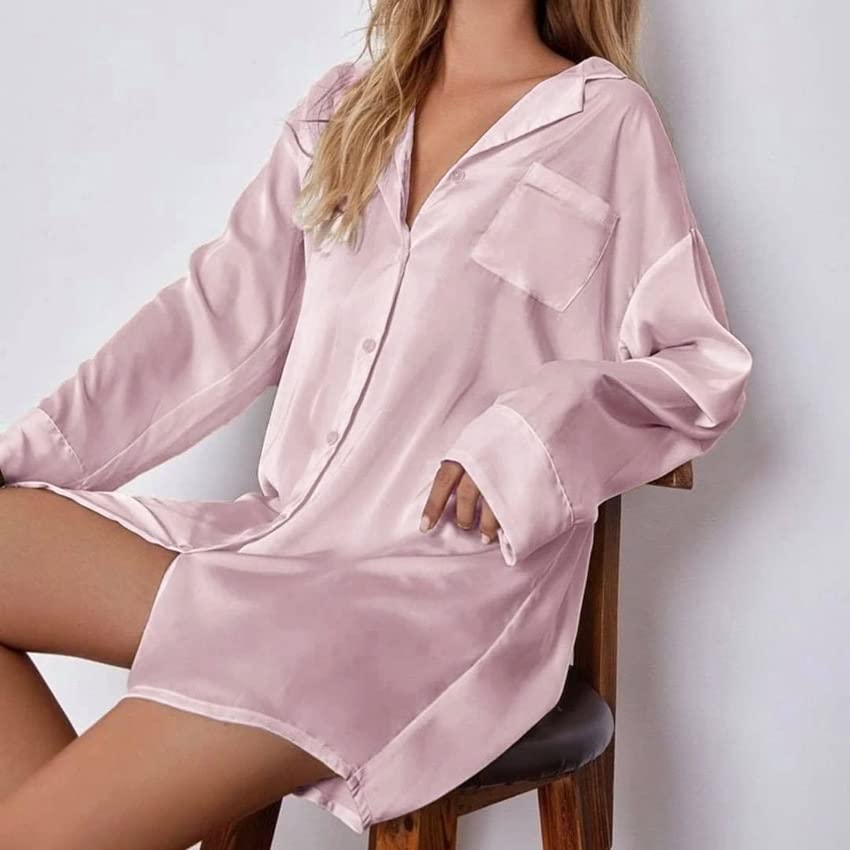 Specification: Lente zomer roze pak kraag shirt jurk lange mouw nachthemd ijs zijde v nek thuis pyjama chenghuax (Color : Pink, Size : M)