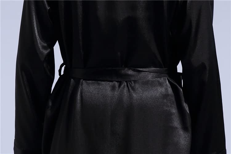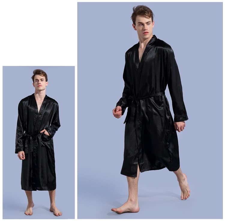 Mannen Solid Color Robe Dunne Vest Nachthemd Grote grootte Lange mouw en Herfst Glanzende Badjas chenghuax (Color : Black, Size : XXL)