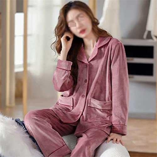 Pyjama sets pyjama open sluiting knop dikke loungewear pyjama vrouwelijke winter (Color : A, Size : XL code)