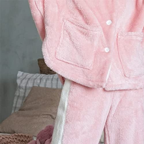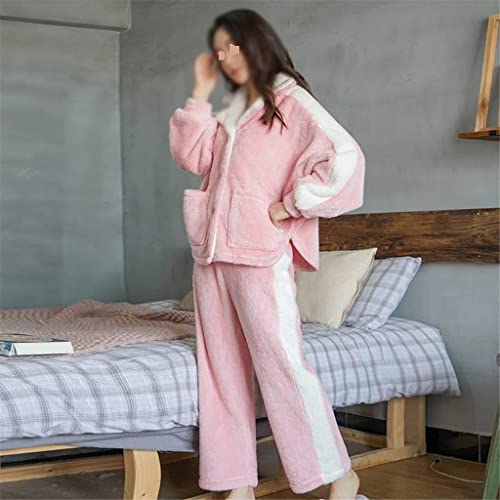 Winter gewatteerde vrouwelijke pyjama set tops lange broek warme pyjama set (Color : Pink, Size : L)