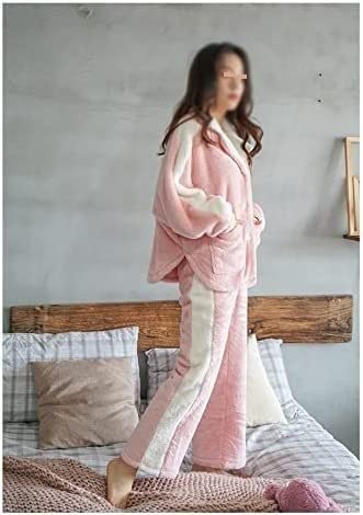Specification: Winter gewatteerde vrouwelijke pyjama set tops lange broek warme pyjama set (Color : Pink, Size : L)