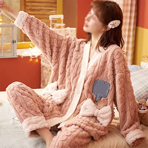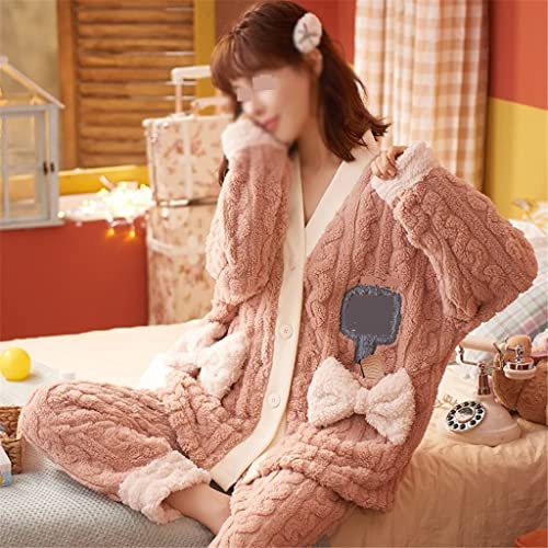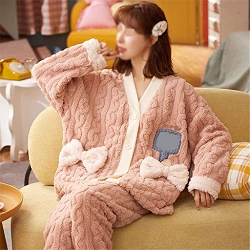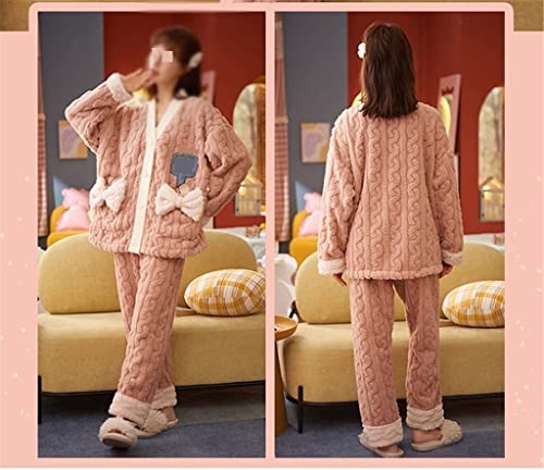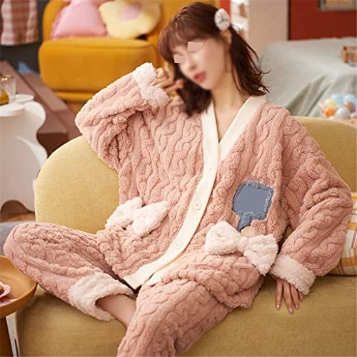 Winterpyjama’s damespyjama’s warme dikke loungewear-pyjama’s met lange mouwen (Color : Pink, Size : XL code)
